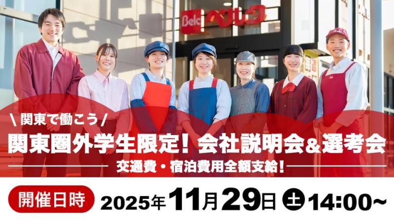 関東で働こう! 関東圏外学生限定!会社説明会 交通費・宿泊費用全額支給!