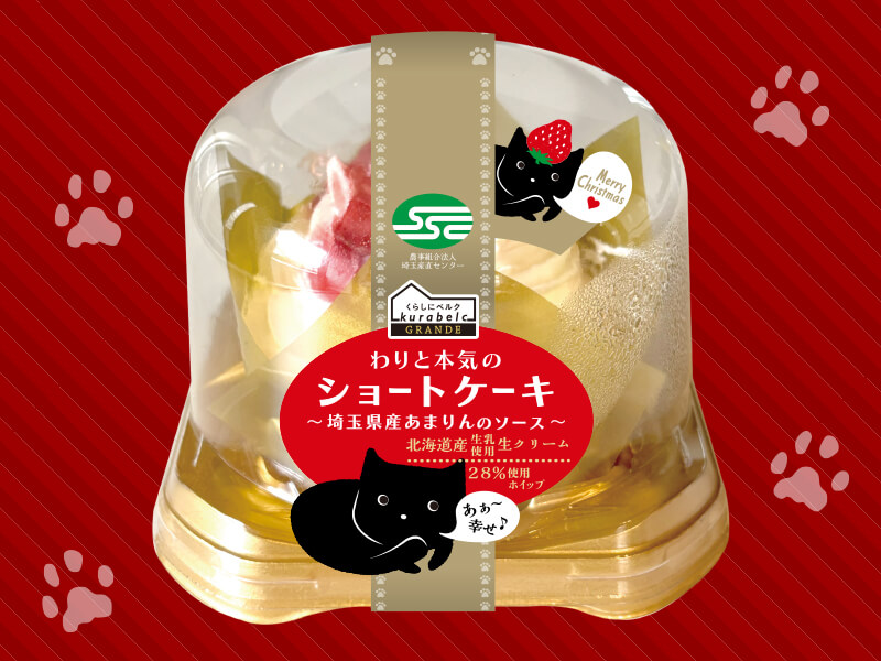 北海道産生乳使用生クリームが28%使用した、濃厚ホイップと、あまりん苺のソースで作った特別なショートケーキ。