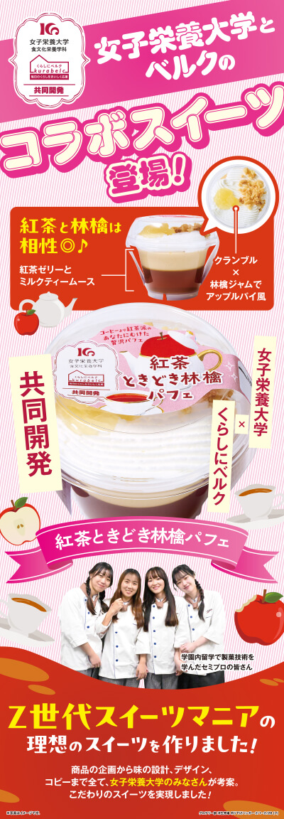 日本栄養大学 食文化栄養学科の学生様と共同でスイーツの開発、商品化を行いました。(2025年度の取り組みになります。)