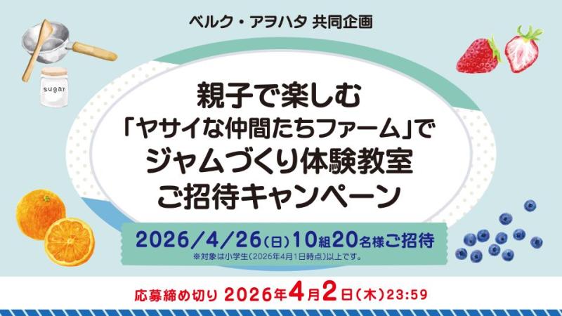 アヲハタ 親子で楽しむ「ヤサイな仲間たちファーム」でジャムづくり体験教室ご招待キャンペーン