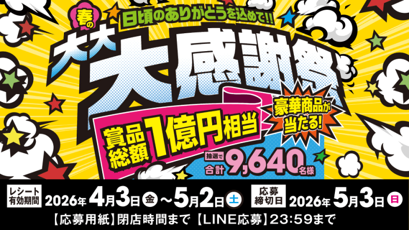 2026年4月5日(水)~2026年5月5日(火) / レシート対象期間:2026年4月5日(日)~2026年5月4日(月)